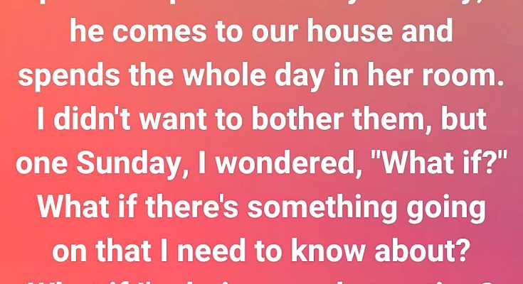 Every Sunday, he visits, and the two of them spend hours in her room. I remind myself that they’re just hanging out, but when the giggles quiet down and the door stays firmly shut, my imagination begins to wander.