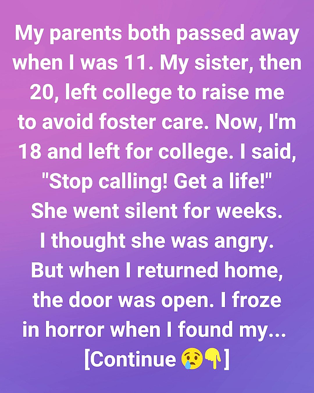 My parents both died when I was just 11. No grandparents, no aunts or uncles — no one. Except my sister. She was only 20, a college sophomore with dreams and plans of her own, but the day our parents died, she packed up her dorm room, came home, and became my everything. She gave up her future so I could have one. She worked two jobs, kept our tiny house running, and loved me through every tantrum, every bad grade, every nightmare.