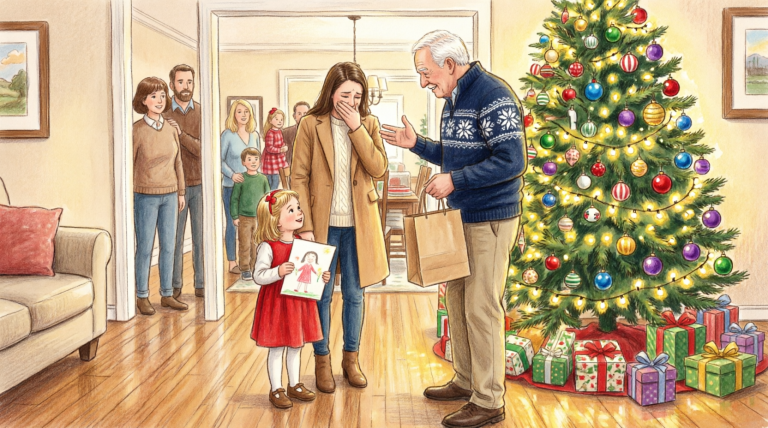 Lily buried her face into my coat the second we stepped onto the porch. Her small body shook against me, her fingers gripping the fabric like she was afraid I might disappear too.