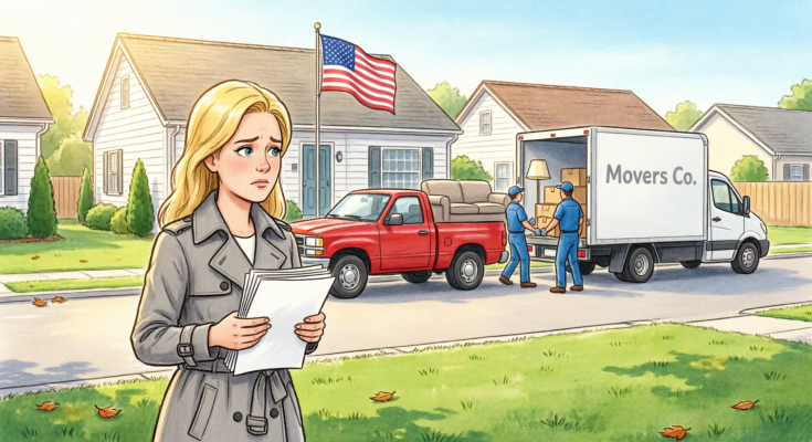 I pulled onto my street just after nine in the morning. The moving truck was back, rear doors open. Two movers were carrying a massive sectional sofa up my walkway. Rachel’s father stood near the mailbox directing them.