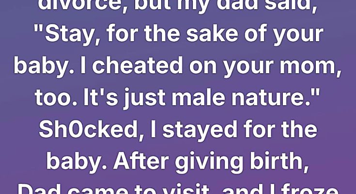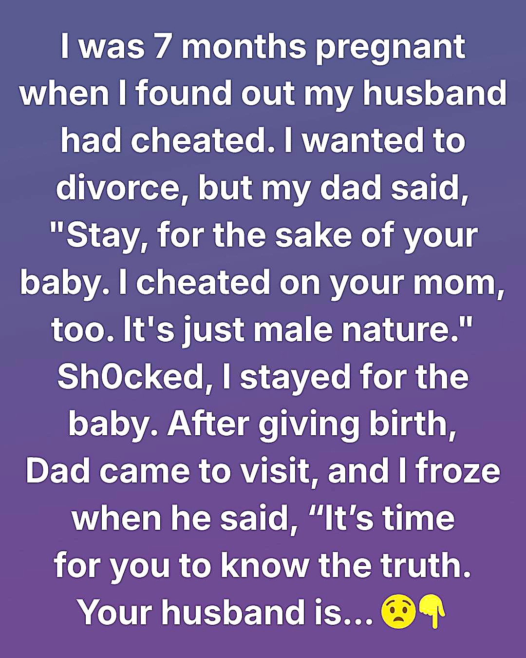 He spoke gently, as if choosing every word with care. “You should stay with your husband for the sake of your baby,” he said. “I also cheated on your mom when she was pregnant. It’s just male physiology, it doesn’t mean anything.”
