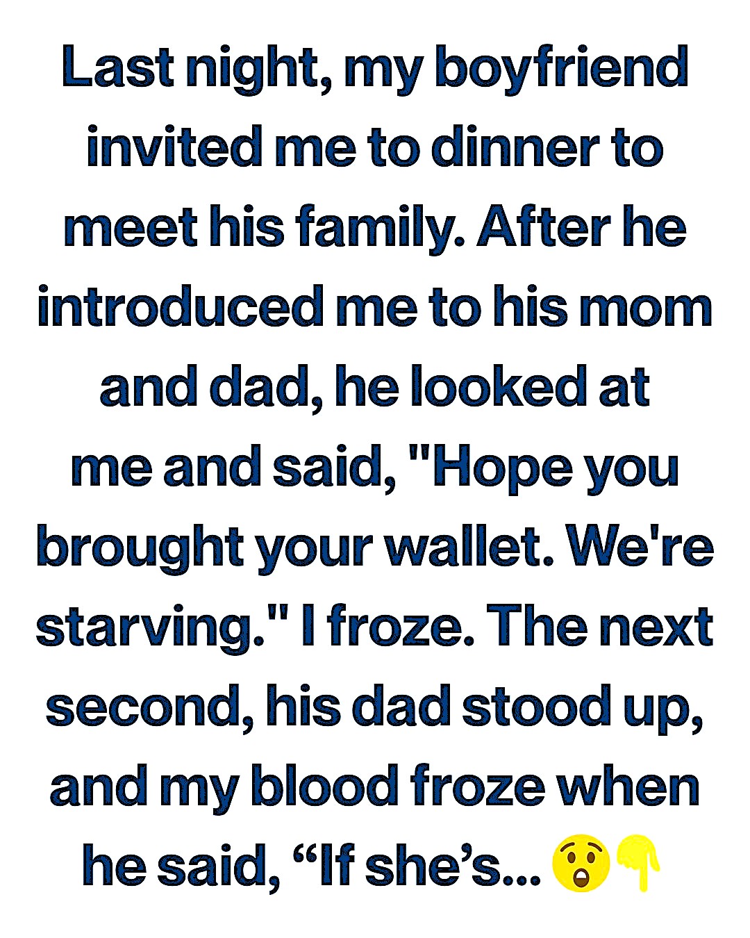 At first, I thought he was joking — a weird joke, but still a joke. But then his dad stood up like a judge about to sentence someone and cleared his throat dramatically. “If she’s already struggling now,” he announced to the table, “imagine the future.”