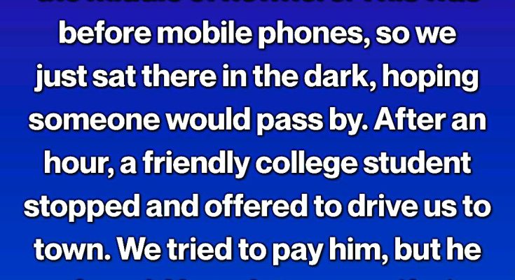 I eased it to the side of the road, my heart sinking as silence rushed in. I tried the ignition again, then again. Nothing. The dashboard lights flickered weakly and went out. This was before mobile phones, before GPS, before the idea that help was always a tap away. We were simply… stranded.