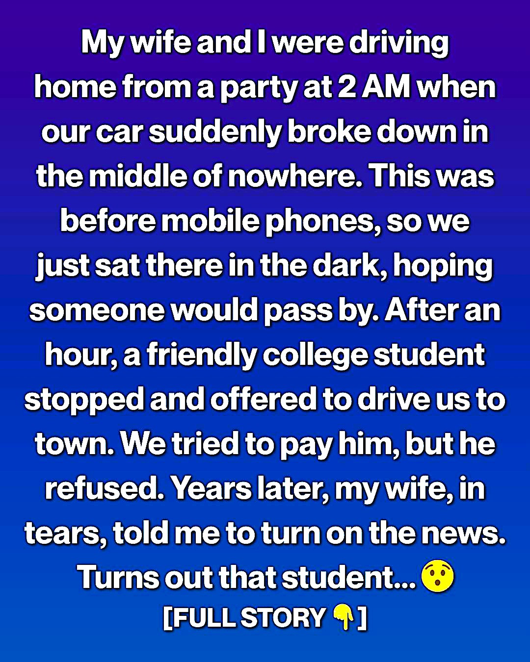 Our Car Broke Down at 2 A.M.—Years Later, the Stranger Who Helped Us Appeared on the News and Left Us Speechless