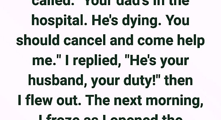 I answered coldly, “He’s your husband, your duty.” Then I got on the plane.