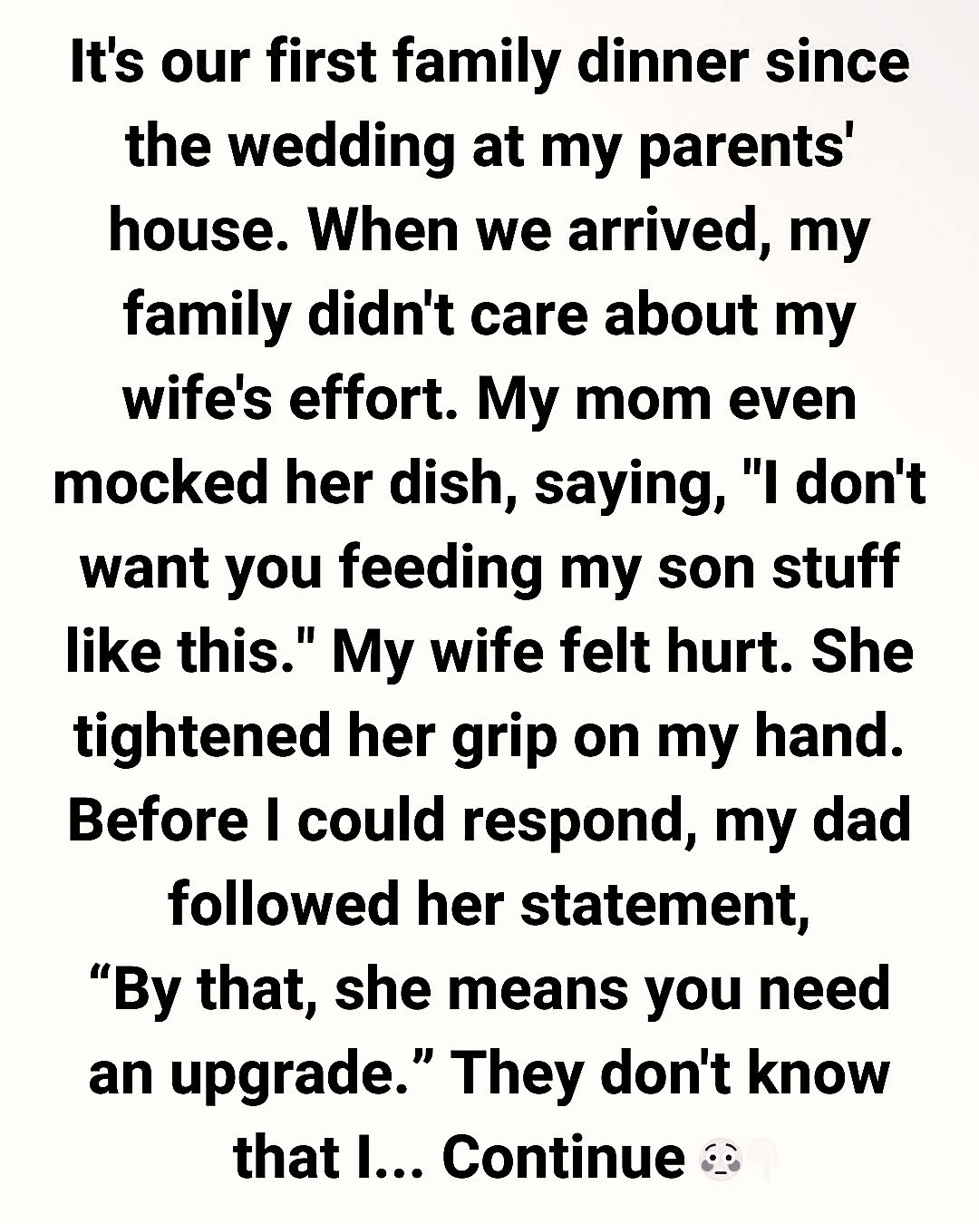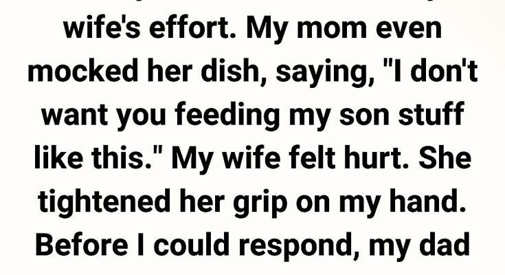 Two months after our wedding, my wife and I went to my parents’ house for our first family dinner. She was excited—she prepared her specialty dish, the one I adore, and wore her favorite dress.