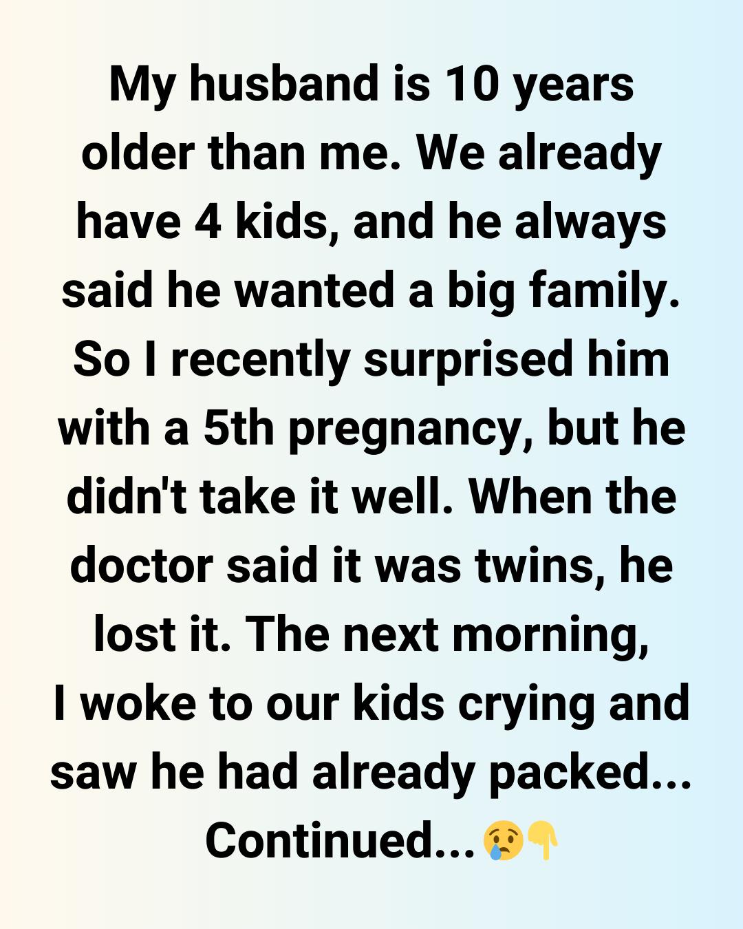 - Everyone mad at the husband is crazy. 4 kids is already a huge family. There’s way more to this story and I think a guy losing his mind over the fact that he has 6 children especially young twins at 45 is understandable. © LeBongJaames / Reddit