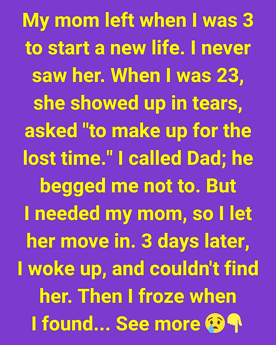 My mom left when I was 3 to “start a new life.” Growing up, it was just me and Dad. He worked himself to the bone to keep us afloat, and I always told myself I didn’t miss her because I didn’t even remember her. But somewhere deep down, I carried this ache. Every birthday, every school recital, I’d imagine her in the crowd, smiling.