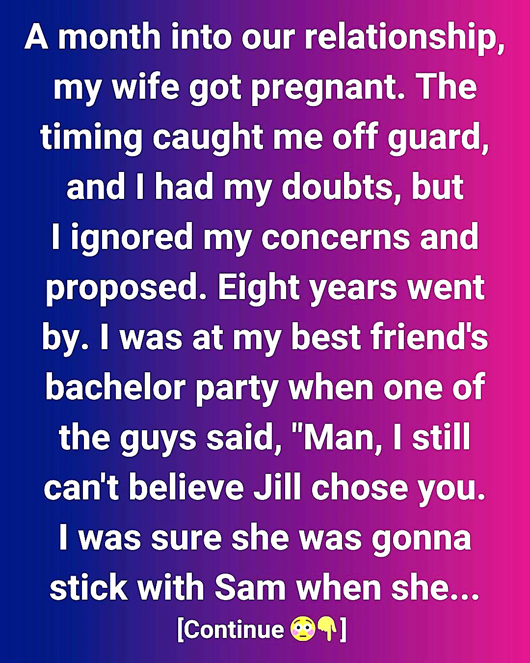 At first, the words barely registered. I laughed it off, thinking it was just nonsense. But then the conversation changed. Others joined in, their words slurred but cuttingly clear. Apparently, Jill had been with Sam just before we got together. When she found out she was pregnant, she chose me, believing I would be the better option as a husband and father.