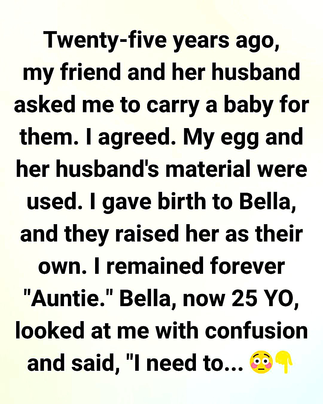 I carried the baby for nine months, feeling every heartbeat and every little kick. And when Bella was born, I placed her gently into her mother’s arms and became “Auntie.”