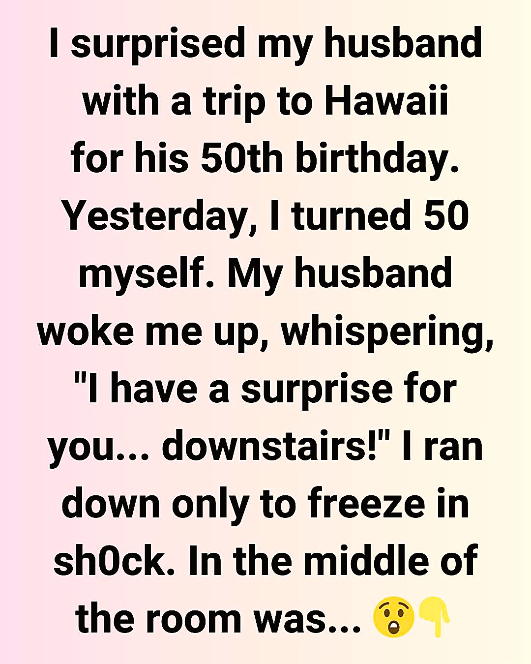 “On my husband’s 50th birthday, I surprised him with a trip to Hawaii. Yesterday, I turned 50 myself. Early in the morning, my husband woke me up and softly whispered in my ear, ’I have a surprise for you…downstairs!’ Excited, I ran down — only to freeze in shock when I saw something unimaginable.