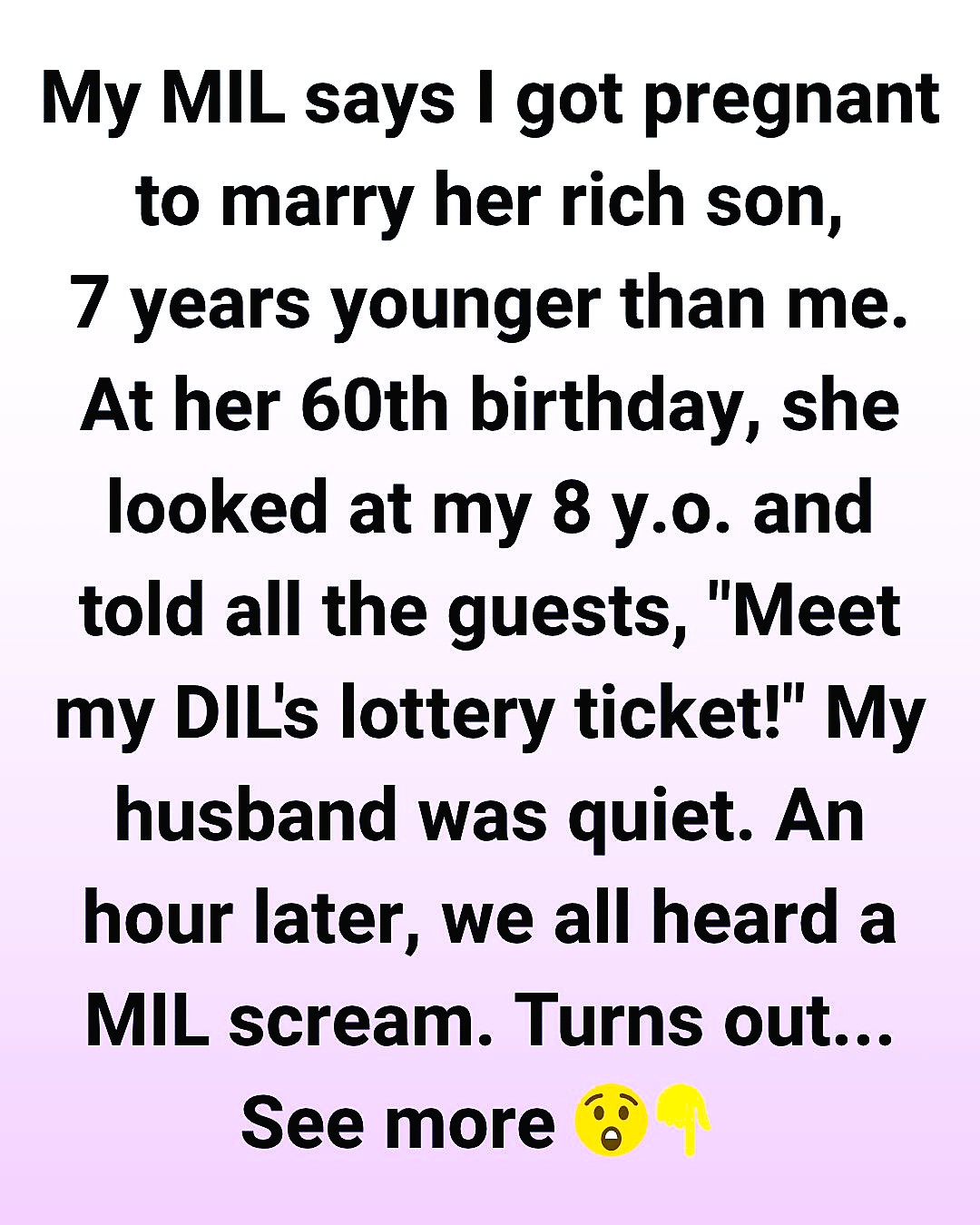 My MIL says that I got pregnant just to marry her son. He’s rich and seven years younger than me. Last week, she invited us to her 60th birthday. She looked at my 8-year-old son, then told all the guests, “Here is my DIL and her lottery ticket!”