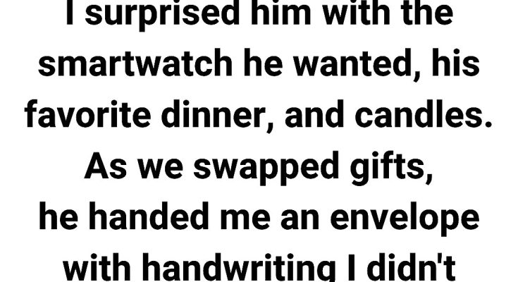 When it was time to exchange gifts, he handed me a small envelope with handwriting I didn’t recognize. I smiled, thinking maybe he’d planned something secret or romantic.