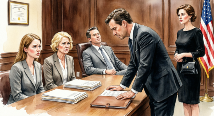 Mr. Harris continued, voice steady, reading clauses with the calm of someone used to detonating family bombs.