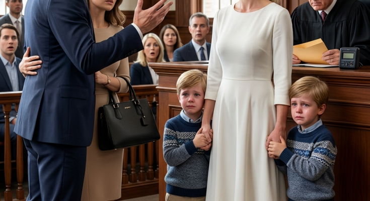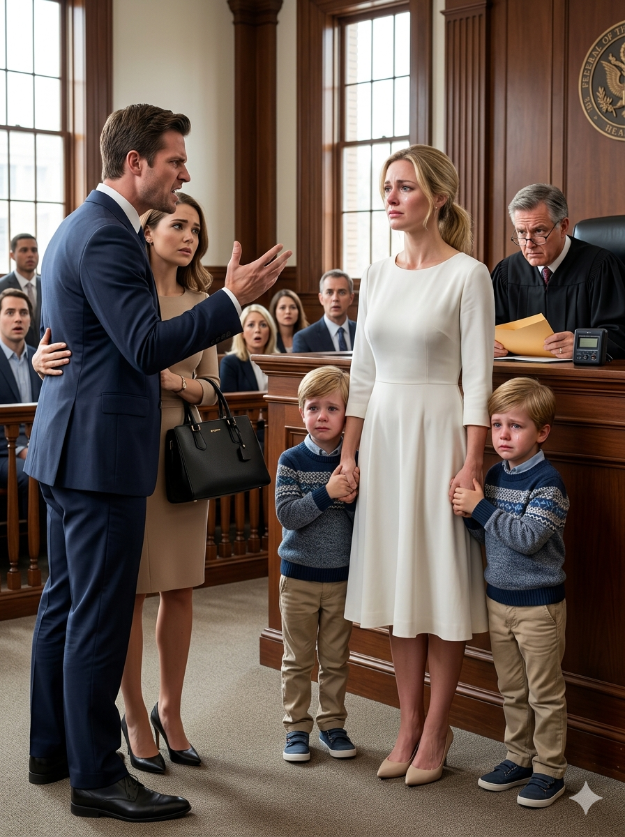 She simply walked forward, step by step, until she stood before the judge’s bench, the twins still holding her hands, their quiet presence somehow louder than any words that could have filled the room.